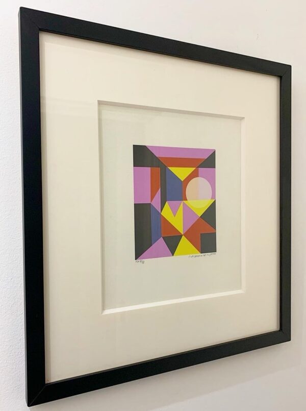 Hermoso grabado en impresión glicée de la gran artista chilena y catedrática de origen italiano Carmen Piemonte. Adscrita al Movimiento Forma y Espacio; perteneciente al Grupo Rectángulo.