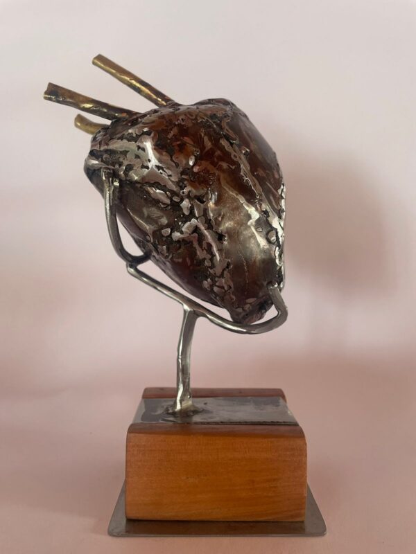 Técnica: carpintería metálica + bronce + madera nativa en su base.